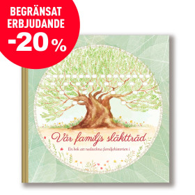 Vår familjs släktträd är en originell bok avsedd att nedteckna släktträdet och familjehistorien i. Boken är välarbetad och genomtänkt vilket gör att ni enkelt kan fylla i era förfäder upp till fem generationer tillbaka och samtidigt alla era efterkommande. Ni kan fylla i intressant information om varje familjemedlem och hens liv samt klistra in fotografier. Ni kan samtidigt be era släktingar att skriva en hälsning i boken – till er och kommande generationer.