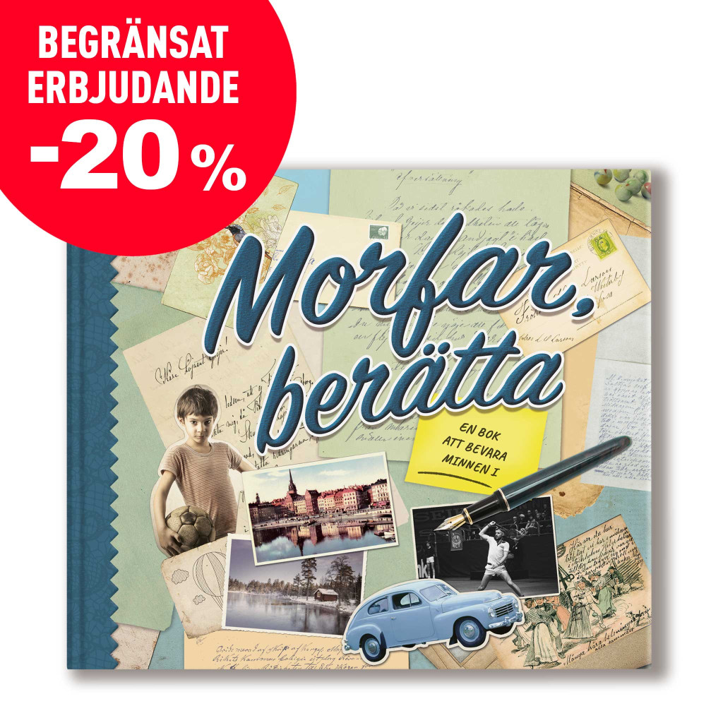 Boken Morfar, berätta är en originell gåva till alla morfäder. Omsorgsfullt utvalda frågor gör det lätt för er att ta del av er morfars liv från barndomen fram till idag. Boken blir ett meningsfullt nöje att fylla i och samtidigt en värdefull framtida skatt för hela er familj.